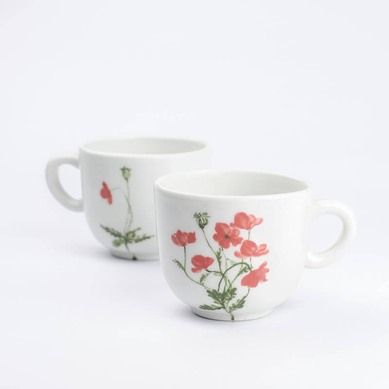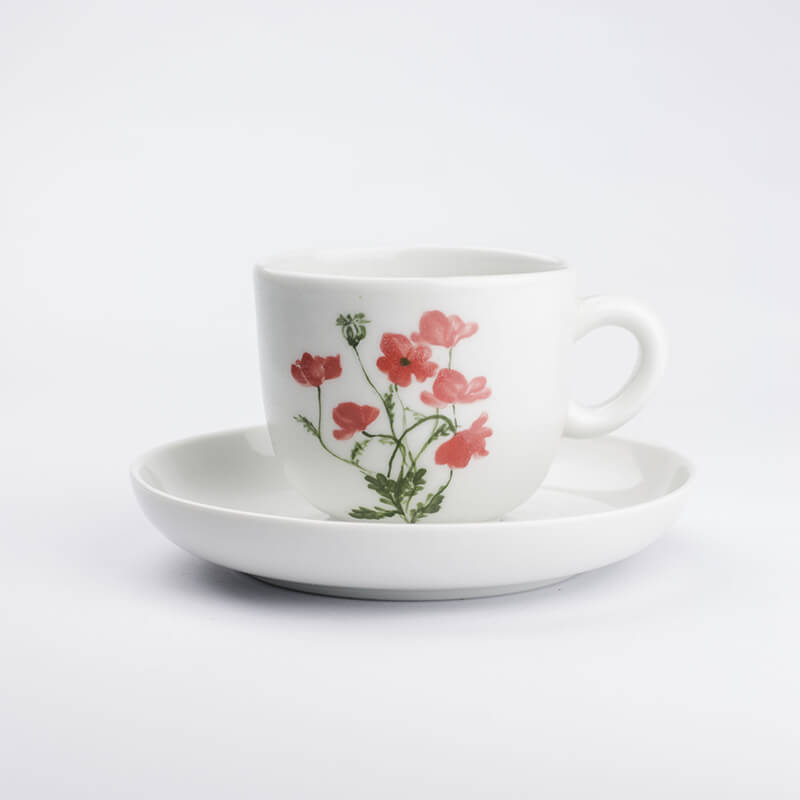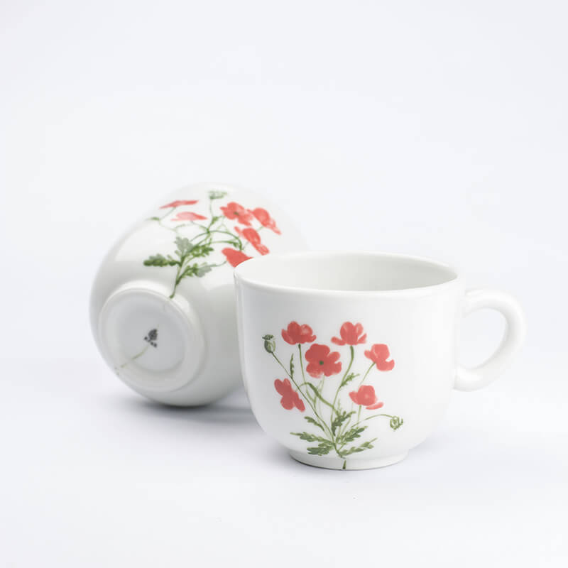 Porcelánový hrnek s originální ruční malbou. Makové květy jsou neodmyslitelnou součástí naši krajiny, ať už volně rozesetá v polích nebo podél cest. Vedle asijských motivu se vracíme domu a hledáme rostliny blízké našemu prostředí.